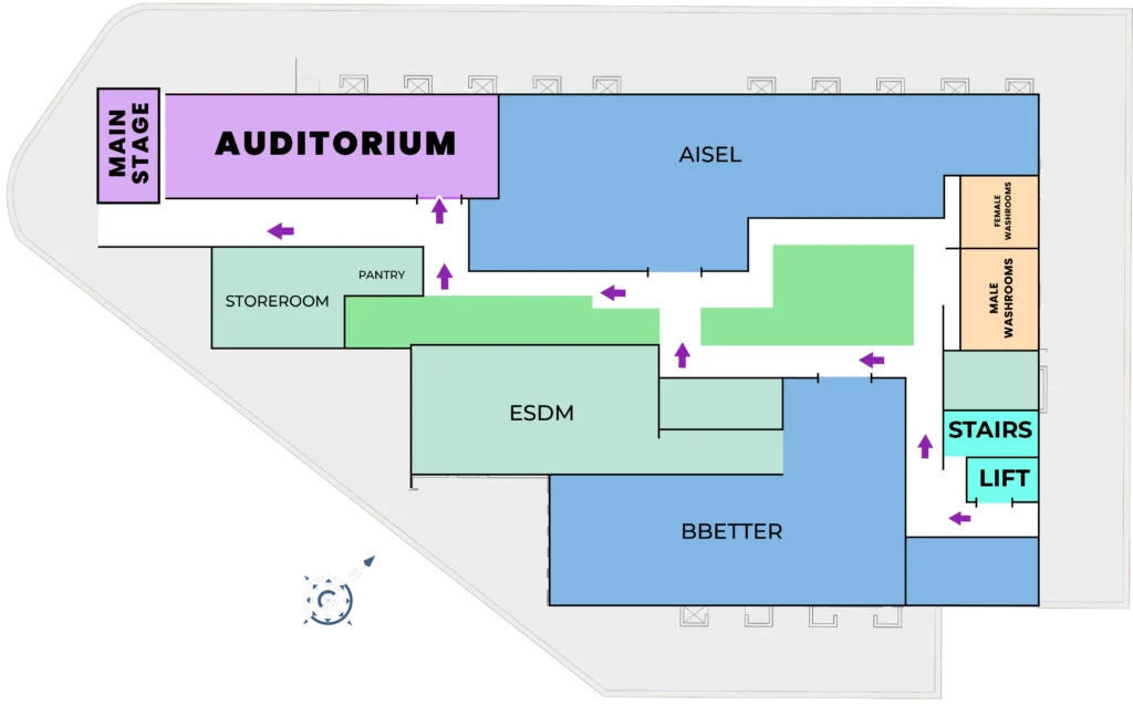 The day begins in the Basement Floor Auditorium and then moves to Ground Floor spaces for all parallel sessions and networking formats.