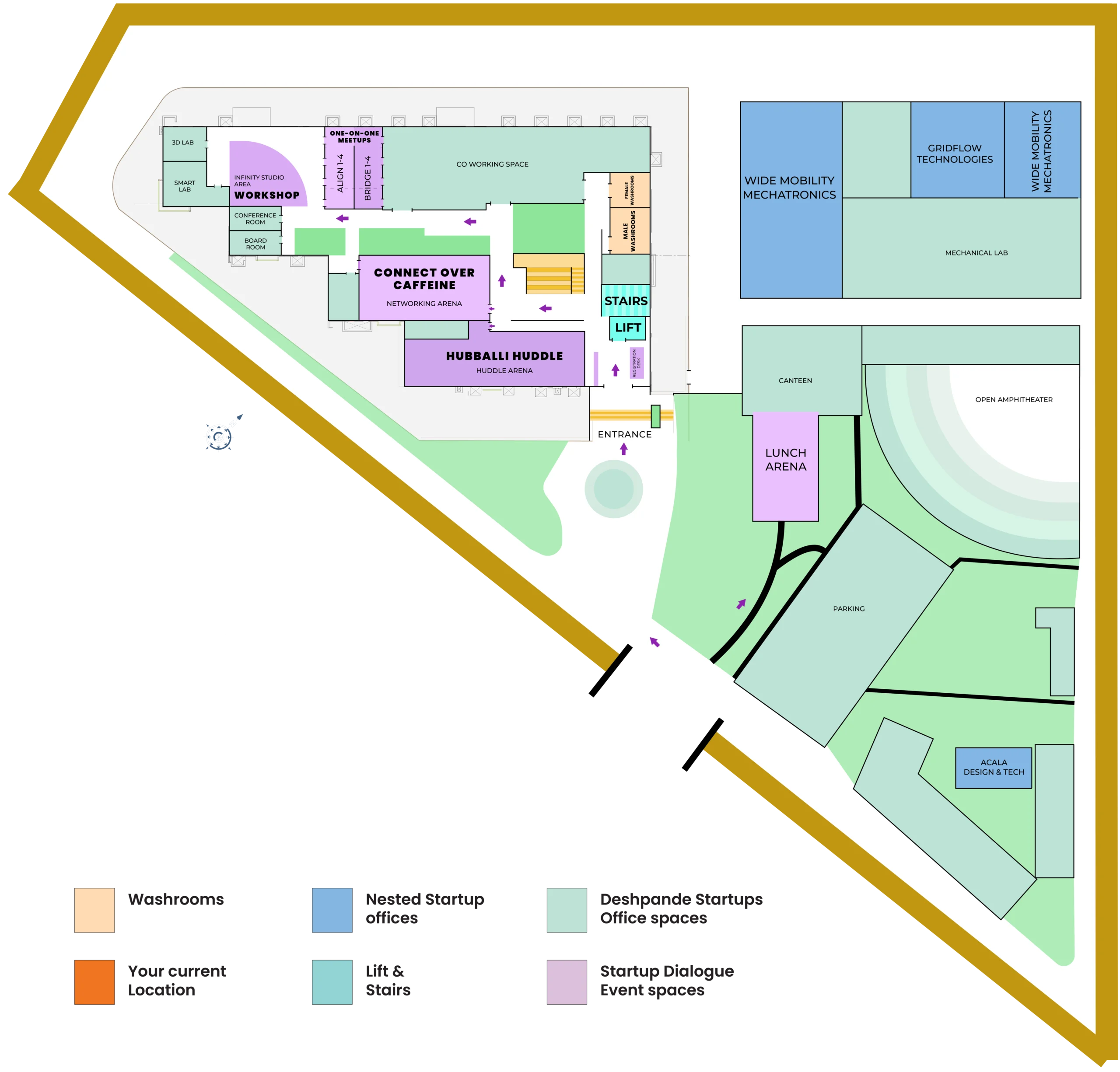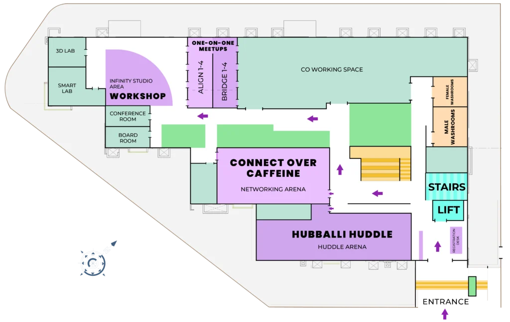The Ground Floor hosts all parallel tracks, workshops, pitches, and networking formats throughout the day.